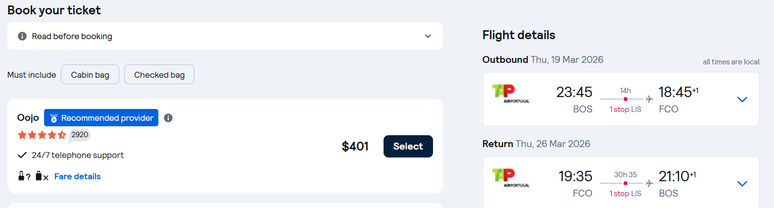 Fly one-stop flights from Boston to Rome, Italy for only $325 roundtrip with TAP Air Portugal.