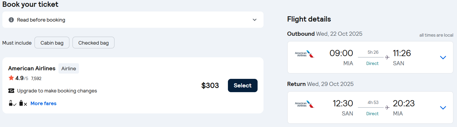 Fly Non-stop flights from Miami to San Diego for only $197 roundtrip with American Airlines.