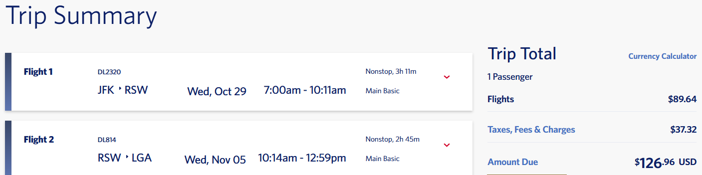 Non-stop flights from New York to Fort Myers, Florida for only $127 roundtrip with Delta Air Lines.