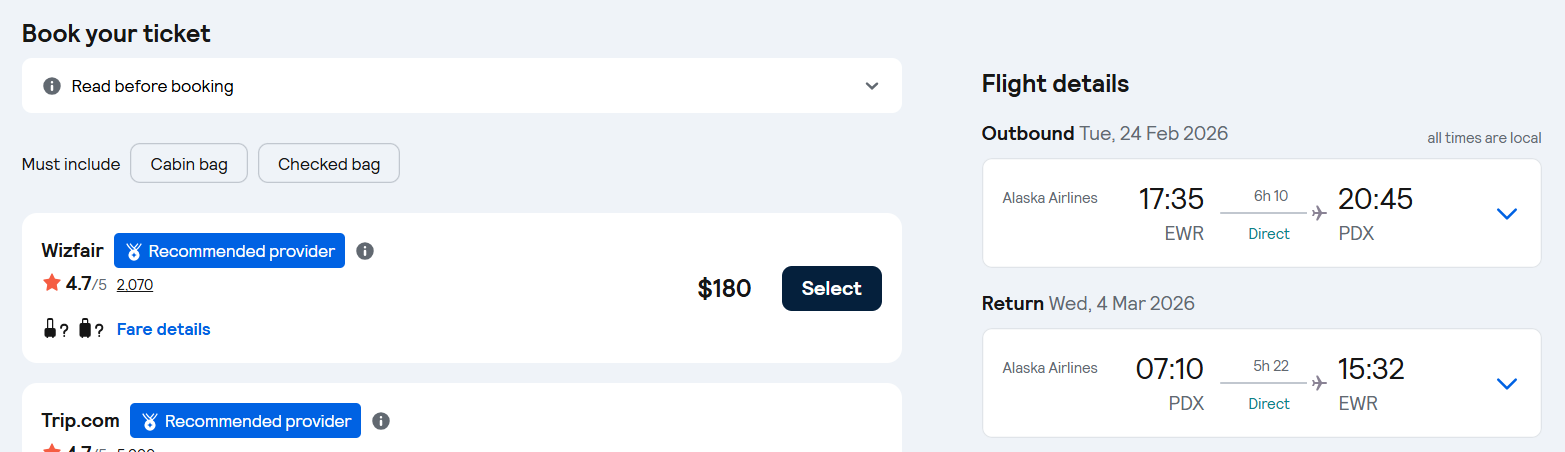 Fly Non-stop flights from New York to Portland, Oregon for only $180 roundtrip with Alaska Airlines.