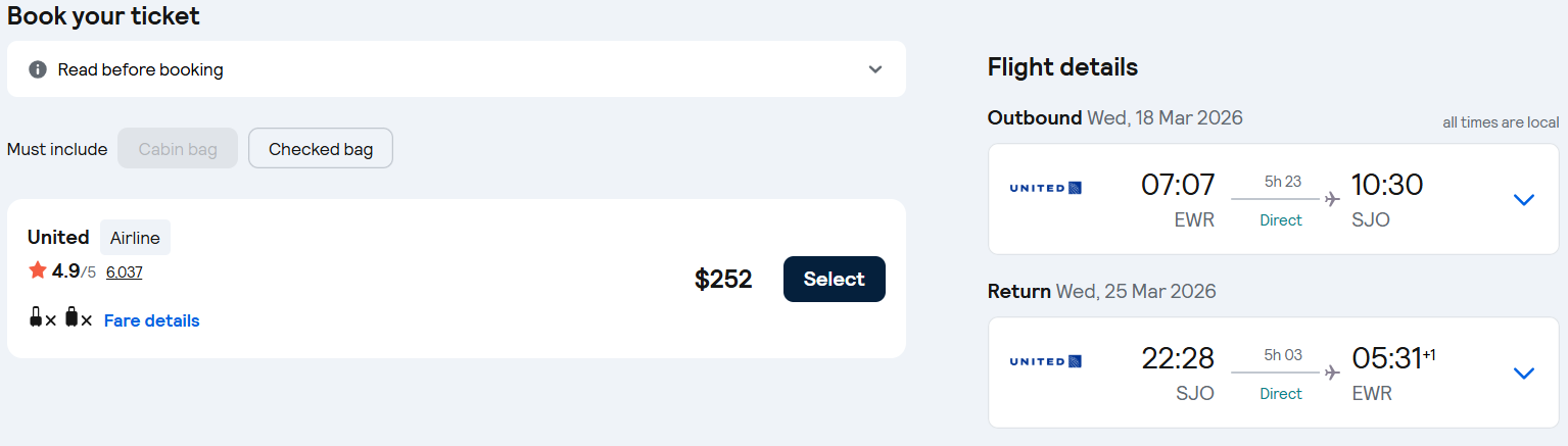 Non-stop flights from New York to San Jose, Costa Rica for only $252 roundtrip with United Airlines.