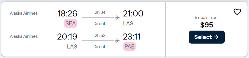 Fly Non-stop flights from Seattle to Las Vegas for only $95 roundtrip with Alaska Airlines.