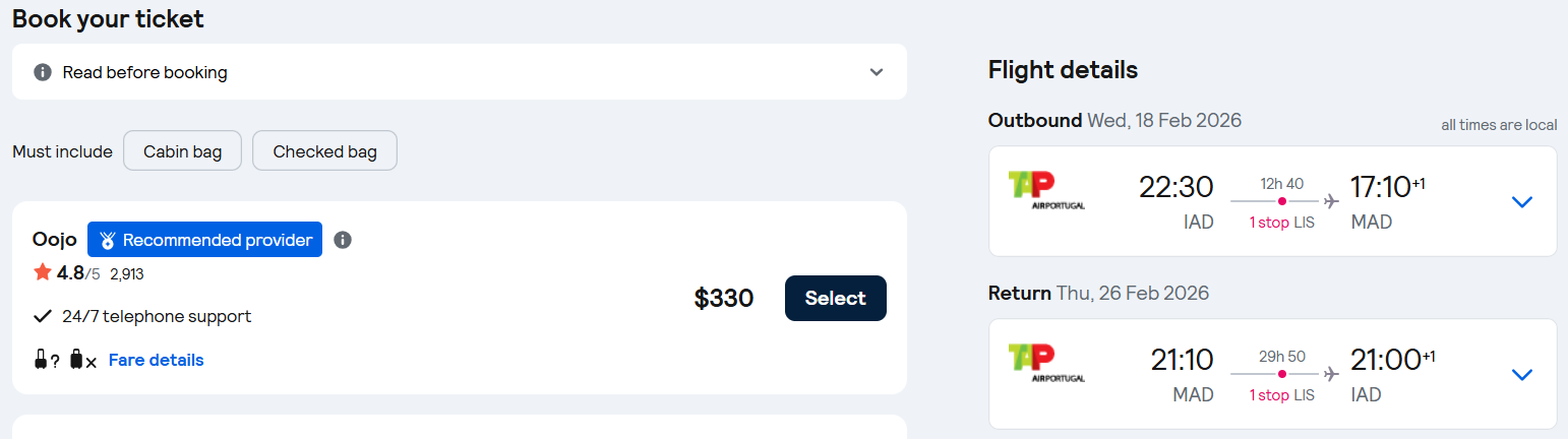 Fly one-stop flights from Washington DC to Madrid, Spain for only $330 roundtrip with TAP Air Portugal.